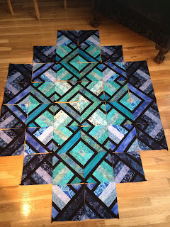 I worked with Dan and Anne Marie on creating a wedding quilt they wanted! We started with my usual process of looking at quilt images online. They wanted blue and purple, they liked a lighter center, and when we found a quilt image, they liked everything about it. Luckily, its available online as a tutorial video from 3 Dudes Quilting, so I watched that a few times, then dug in.